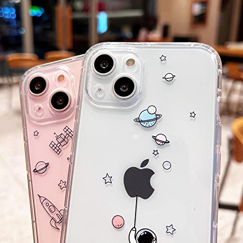 AMART Custodia per iPhone 13 6.1 pollici, 2Pack Creative Funny Design Trasparente Morbido Protettivo Antiurto Cover Astronauta Pianeta Carino Ultra-Sottile Custodia per iPhone 13 Solo