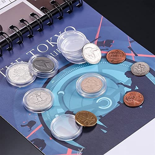 Amasawa 100 Pezzi Monete Collezione Scatola, Monete Capsula, Rotonda Monete Scatola, Trasparente Plastica Monete Scatola, con Scatola di Immagazzinaggio, per la Raccolta di Monete Forniture