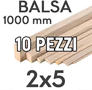 Amati Listelli Balsa lungh. mm. 1000mm. 2x5 Confezione 10 Pezzi