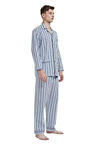 Amaxer Pigiama Uomo Cotone Lungo, Pigiama Manica Lunga Uomo, Pigiama Due Pezzi Uomo con Bottoni a Uomo Due Pezzi con Maniche Lunghe in Cotone