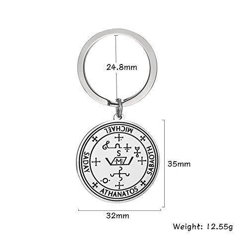 Amaxer Portachiavi in acciaio inox con simbolo del 7° Arcangelo Michael Saday Athanatos Sabaoth Cross Talismano Portachiavi con ciondolo, Argento, Medium