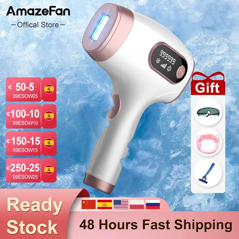 AmazeFan 9 Flashes Photoepilator IPL Hair Removal Ice Laser Epilator Permanent Painless Home Epilator