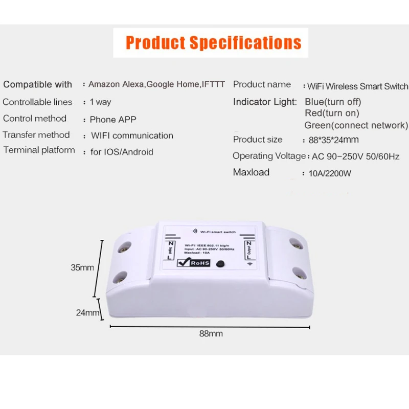 Amazon Alexa Compatible Google Home Smart Life APP Control Wireless WiFi Remote Smart Switch Home Improvement Automation Module