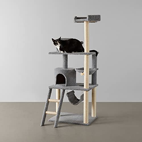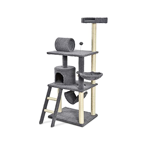 Amazon Basics - Albero per gatti con cuccia, amaca e tunnel, 66 x 157,5 x 48,26 cm, grigio