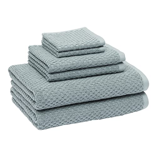 Amazon Basics, Set di asciugamani da bagno testurizzati resistenti agli odori, 6 x 137 cm, confezione da 6, Verde Acqua