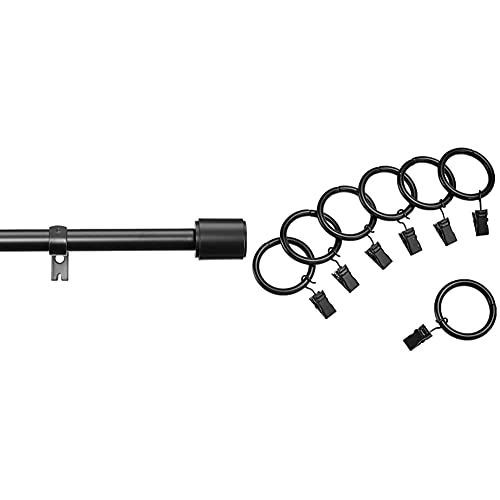 Amazon Basics - Bastone Da Tenda Con Terminali Cilindrici, Da 182 Fino A 365 Cm, Nero & - Occhielli A Clip Per Tende, 2,54 Cm, Set Di 7, Nero