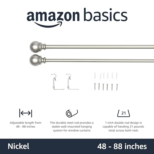 Amazon Basics - Bastone per tenda, con terminali rotondi, da 71 a 122 cm, diametro 1,6 cm, nichel