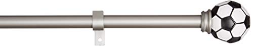 Amazon Basics - Bastone per tende, 1,6 cm, con elementi decorativi a forma di pallone da calcio, 122 cm, Argento