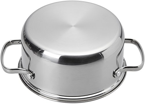 La batteria da cucina in acciaio inox, da 12 pezzi, è composta da 1 casseruola da 1,41 l con coperchio, 1 padella da 25 cm con coperchio, 1 grande pentola da 5,2 l con coperchio e 3 pentole da 1,41/1,89/2,83 con coperchio