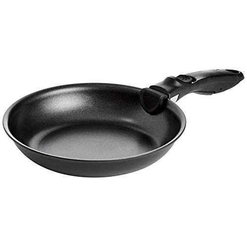La batteria da cucina da 10 pezzi comprende: una padella da 20 cm x 4.3 cm, una padella da 22 cm x 4.3 cm, una padella da 26 cm x 4.8 cm, una pentola da 16 cm x 7.5 cm, una pentola da 18 cm x 7.5 cm, un manico rimovibile, un coperchio da 16 cm con guarnizione in plastica e un coperchio da 18 cm con guarnizione in plastica