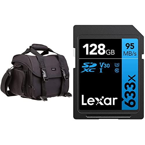 Amazon Basics - Borsa A Tracolla Grande Per Fotocamera E Accessori, Nero Con Interno Grigio & Lexar Schede Professional 633x 128GB SDXC UHS-I, 45/95 MB/s