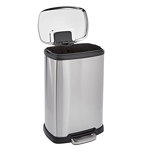 Amazon Basics - Cestino per rifiuti rettangolare con chiusura silenziosa e base rialzata, 50 litri