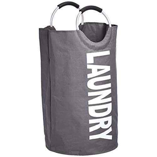 Amazon Basics - Cesto per il bucato in tessuto con manico in alluminio, Grigio scuro