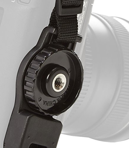 Design universale. Si collega all'occhiello della fotocamera e al supporto per treppiede grazie al perno a vite