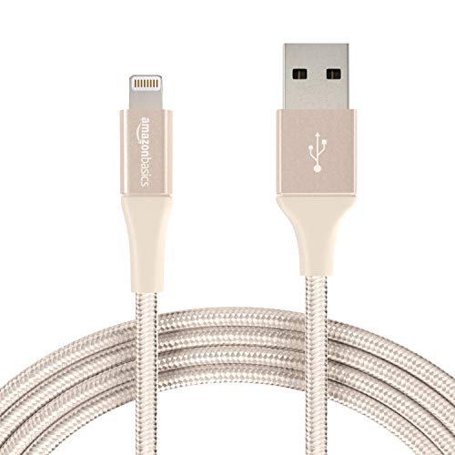 Amazon Basics - Cavo compatibile da USB A a Lightning, in nylon a doppio intreccio - Certificato Apple Mfi, Oro, 3 m