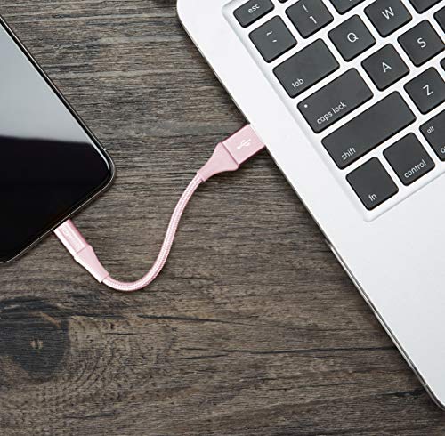 Amazon Basics - Cavo compatibile da USB A a Lightning, in nylon a doppio intreccio - Certificato Apple Mfi, Oro rosa, 10 cm