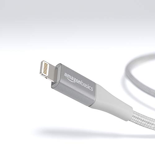 Amazon Basics - Cavo compatibile da USB A a Lightning, in nylon a doppio intreccio - Certificato Apple Mfi, Argento, 10 cm