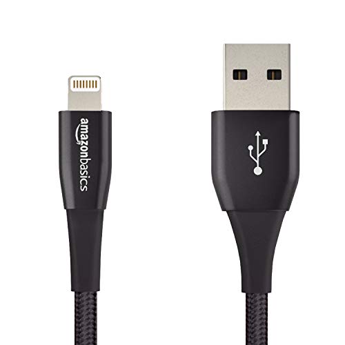 Amazon Basics - Cavo USB Tipo A verso connettore Lightning, con guaina in doppio nylon intrecciato, collezione Premium, 10 cm - Nero