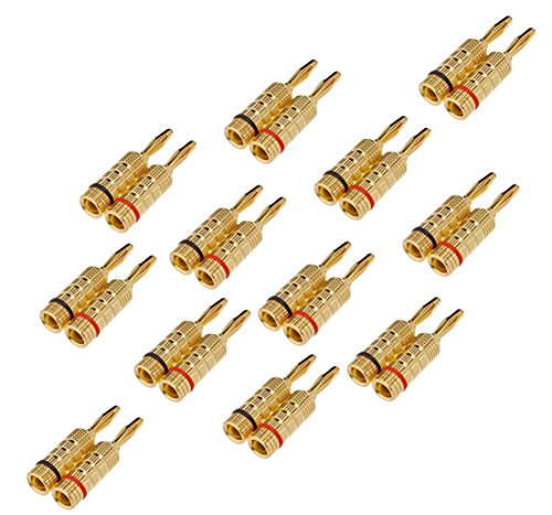 Confezione da 12 coppie di connettori a banana con connessione cavo a serrare con vite (totale di 6 x 2 spine), per una facile installazione di altoparlanti