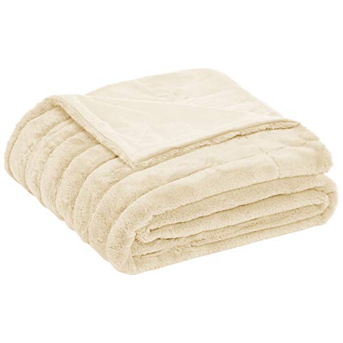 Amazon Basics - Coperta in finta pelliccia con trapuntatura a righe, Avorio, 150 x 200 cm