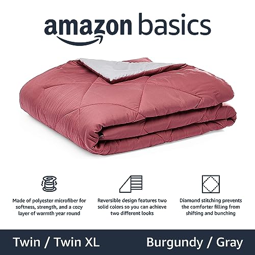 Amazon Basics Coperta reversibile in microfibra leggera piumino - Twin/Twin XL, Borgogna/Grigio