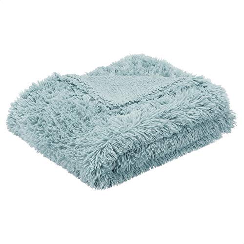 Amazon Basics, Coperta in sherpa e pelliccia sintetica morbida a pelo lungo, 127 x 152 cm, colore blu verde acqua