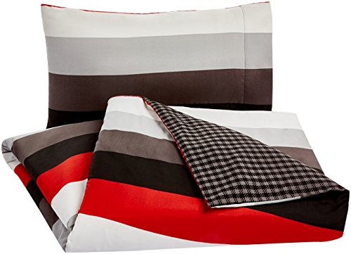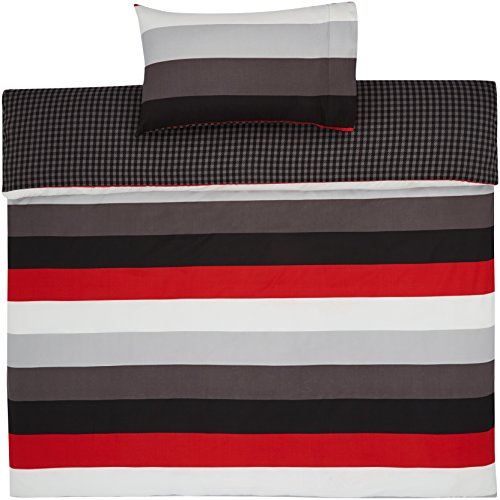 Amazon Basics - Set copripiumino in microfibra, 135 x 200 cm, Rosso a strisce (Red Simple Stripe)