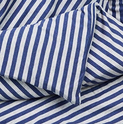 Amazon Basics - Set copripiumino in tessuto Jersey, motivo a strisce - 260 x 220 cm / 50 x 80 cm, Blu marino
