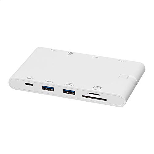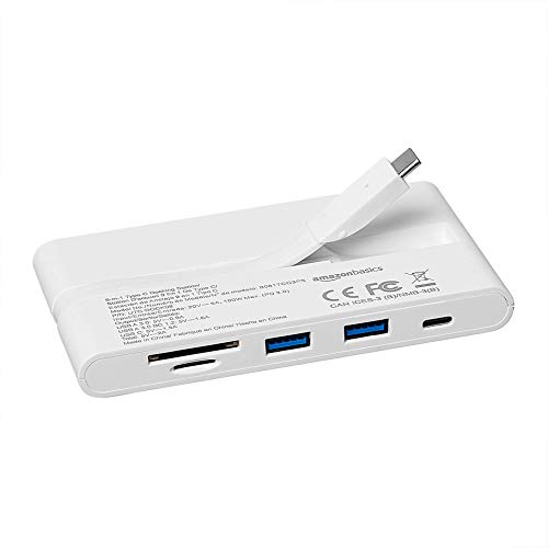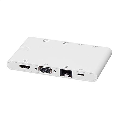 Amazon Basics - Docking Station in alluminio USB 2 tipo C con HDMI, VGA, Ethernet, 2 USB-A, lettore di schede SD/TF, porta dati tipo C (5 Gb/s) e porta di ricarica tipo C, in plastica ABS, bianca