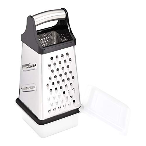 Grattugia verticale da 25,4 cm, con 4 superfici e contenitore, per grattugiare alimenti duri o morbidi