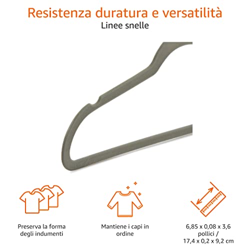 Amazon Basics - Gruccia in velluto con portapantaloni, 100 pezzi, Grigio