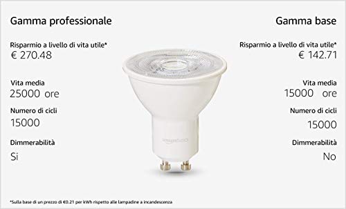 Amazon Basics, lampadine per faretti, professionali, a LED, GU10, equivalenti 50W, luce Bianca Freda, regolabile - confezione da 6
