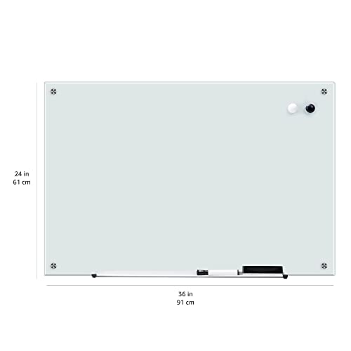 Amazon Basics - Lavagna cancellabile in vetro, bianca, magnetica, 61 x 91,4 cm