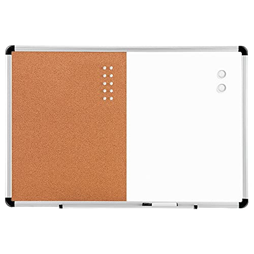 Amazon Basics - Lavagna combinata cancellabile magnetica e bacheca in sughero, 91,4 x 61 cm