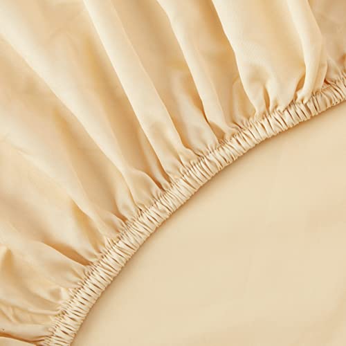 Amazon Basics - Lenzuolo con angoli, in rasatello di cotone a 400 fili, anti-piega, colore: beige, beige, 160 x 200 x 30 cm