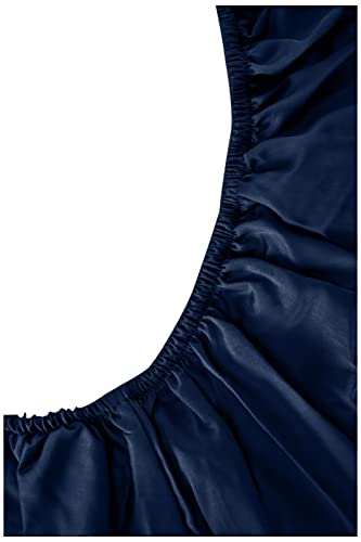 Amazon Basics - Lenzuolo con angoli singolo, in rasatello di cotone 400 fili, Blu navy 90 x 200 x 30 cm
