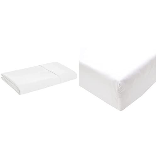 Amazon Basics Lenzuolo senza angoli in microfibra, 275 x 275 cm, colore: bianco brillante & Lenzuolo con angoli in microfibra, 160 x 200 x 30 cm, Bianco brillante