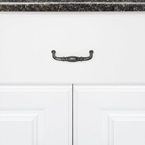 Amazon Basics - Maniglia per cassetto mobili, stile classico, Lunghezza 9,42 cm (interasse: 7,62 cm), Argento anticato, Confezione da 10 pezzi