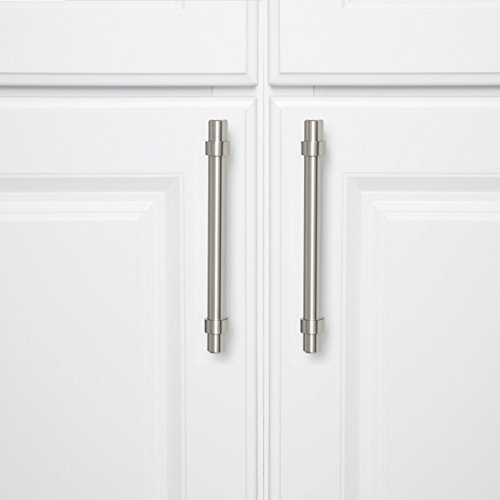 Amazon Basics - Maniglia dritta per mobili, a barra, Lunghezza 16,84 cm (Interasse: 12,7 cm), Nichel satinato, Confezione da 10