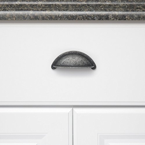 Amazon Basics - Maniglia cava a impugnatura inferiore per cassetti, larga, Lunghezza 9,37 cm (interasse: 7,62 cm), Argento anticato, Confezione da 10