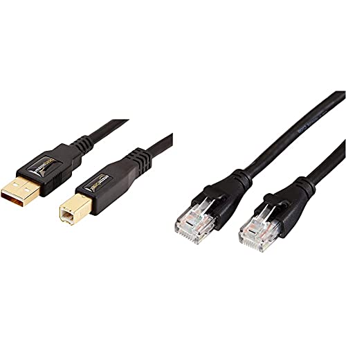 Amazon Basics - Cavo USB 2.0 maschio A/maschio B (4,8 m) & - Cavo patch Ethernet di Cat6 con connettori RJ45, 4,26 m