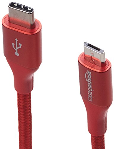 Amazon Basics - Cavo da USB C a micro B 2.0, maschio, in nylon a doppio intreccio | 0,3 m, Rosso