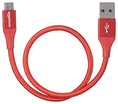 Amazon Basics - Cavo da USB 2.0 A a micro B, in nylon a doppio intreccio | 0,3 m, Rosso
