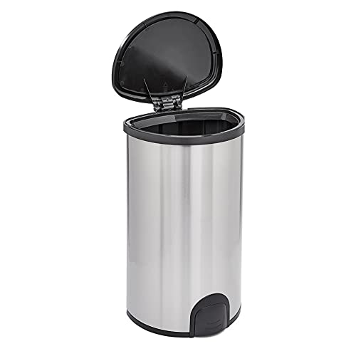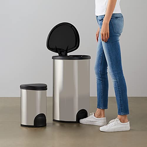 Amazon Basics Pattumiera automatica in inox, apertura con sensore tramite contatto del piede - Doppio scomparto da 50L/12L, 2 unità, A forma di D, Acciaio inossidabile