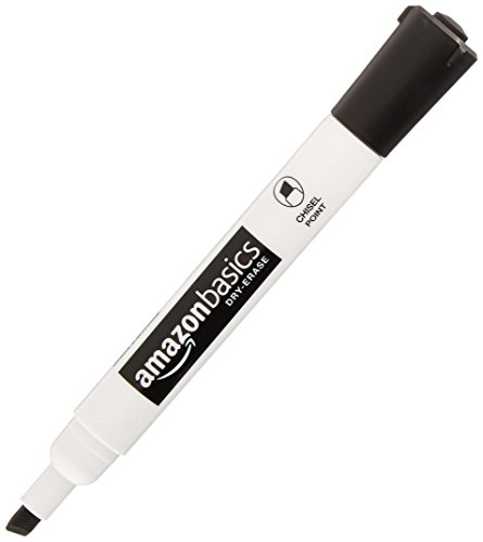 Amazon Basics - Pennarelli cancellabili a secco, inodore, punta a scalpello, confezione da 8, nero