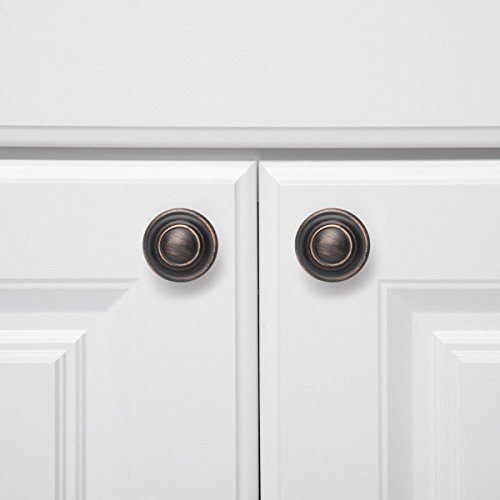 Amazon Basics - Pomolo con bordo ad anello per mobili, stile classico, Diametro: 3,17 cm, Bronzo anticato, Confezione da 10 pezzi