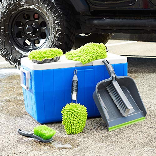 Il kit per la pulizia dell'auto include uno spolverino, spazzola per auto, guanto di ciniglia, guanto pulente, set di spazzola e paletta
