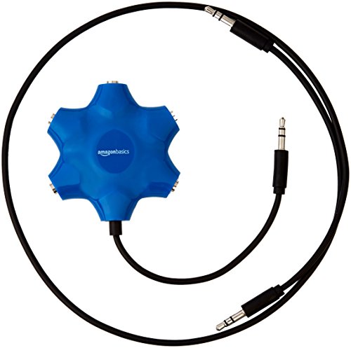 Amazon Basics Sdoppiatore per cuffie audio, con 5 prese, Blu