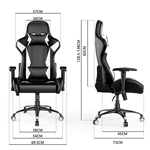 Amazon Basics - Sedia da ufficio e da Gaming, design Racing, in pelle PU, bianco