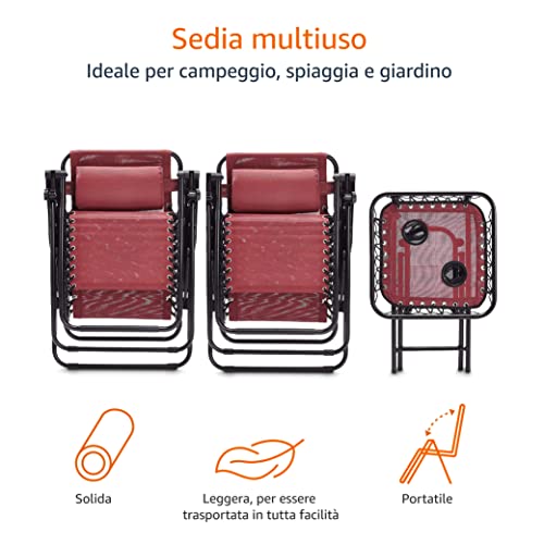 Amazon Basics - Sedie a sdraio Zero Gravity con tavolino, set da 2, rosso